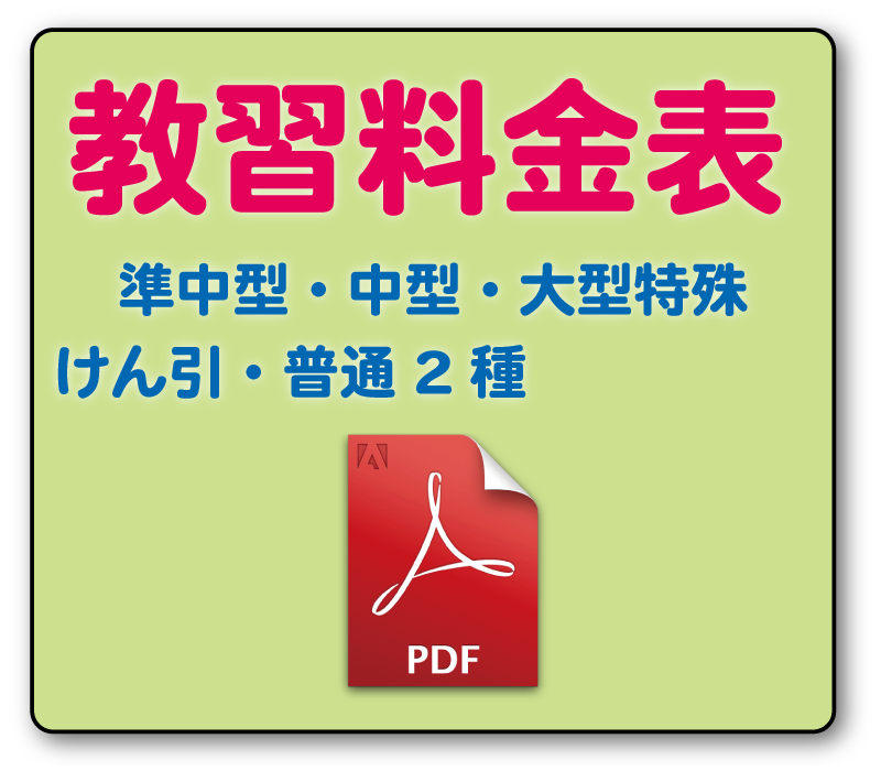 ● 全車種一覧 ● 普通車AT限定解除 ● 普通車AT ● 準中型MT ● 大型二輪MT ● 大型二輪AT ● 普通二輪MT ● 普通二輪AT ● 小型二輪MT ● 小型二輪AT ● 中型自動車 ● 大型特殊 ● けん引 ● 普通二種(MT) ● 普通二種(AT)
