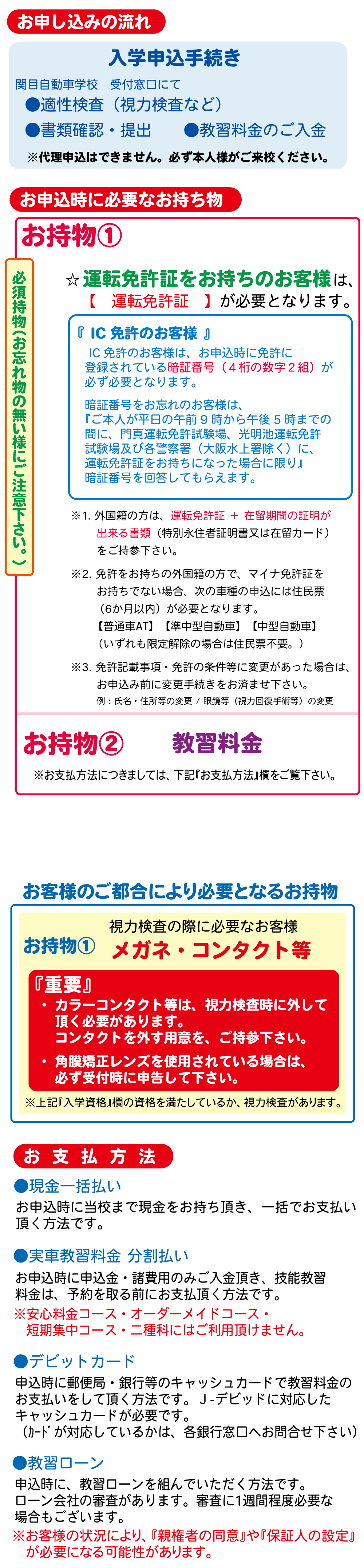 | 現有免許 | お申込時 お支払額(税込) ( A ) | 仮免交付費用(非課税) ( B ) | 卒業までに 必要な料金 ( A + B ) |
